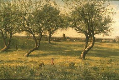 | Keywords: Carl Peter Burnitz - Landschaft mit Blick auf Frankfurt am Main.jpg Carl Peter Burnitz 1824-1886 Landschaft mit Blick auf Frankfurt am Main other date ca 1867 oil canvas cm 46 66 Alte Nationalgalerie http //www kronberger-maler de/litera/levis html kronberger-maler de / Leopold Levis Peter Burnitz Emsdetten 1937 Diss object history 1903 Ankauf von der Kunsthandlung I P Schneider jn Frankfurt Main credit line Burnitz rechts unten accession number A I 748 http //www galerie de/krause/welcome html galerie de PD-Art-100 Carl Peter Burnitz Paintings in the Alte Nationalgalerie Frankfurt am Main in art Landscape paintings of Germany 1860s paintings 1860s landscape paintings Paintings of fields |