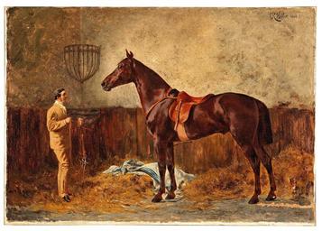 | Keywords: Carl Rudolf Huber Vor dem Ausritt 1866.jpg  Artwork Creator Carl Rudolf Huber Vor dem Ausritt Before the Ride C R Huber 1866 5 signature/date 1866 Oil on canvas cm 63 89 5 http //www dorotheum com/ PD-old-auto-1923 1896 Images from Dorotheum Carl Rudolf Huber 1866 paintings Paintings of horses Horse stables in art |