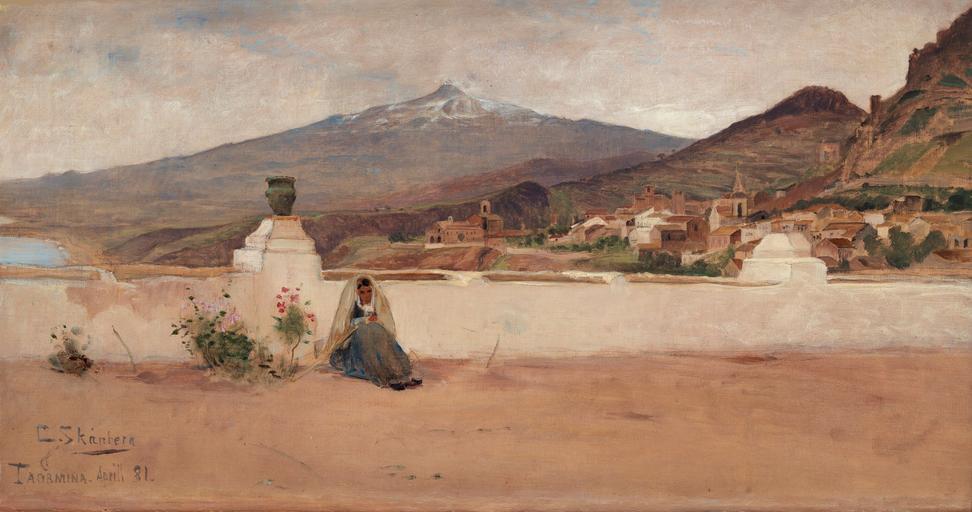 | Keywords: Carl Skånberg - Utsikt vid Taormina med Etna (1881).jpg attributed to title Utsikt vid Taormina med Etna Blick auf Taormina mit Ätna View at Taormina with Etna Vista a Taormina con l'Etna 1881-04 oil canvas cm 43 5 83 credit line accession number C Skånberg / Taormina April -81 ~ lower left signature and date object history https //www bukowskis com/sv/auctions/559/123-carl-skanberg-utsikt-vid-taormina-med-etna Lilla Bukowskis 2010 12 07 sale S191 lot 123 Other versions PD-old-100 Carl Skånberg Landscape paintings of Italy Taormina 1880s landscape paintings Images from Bukowskis |
