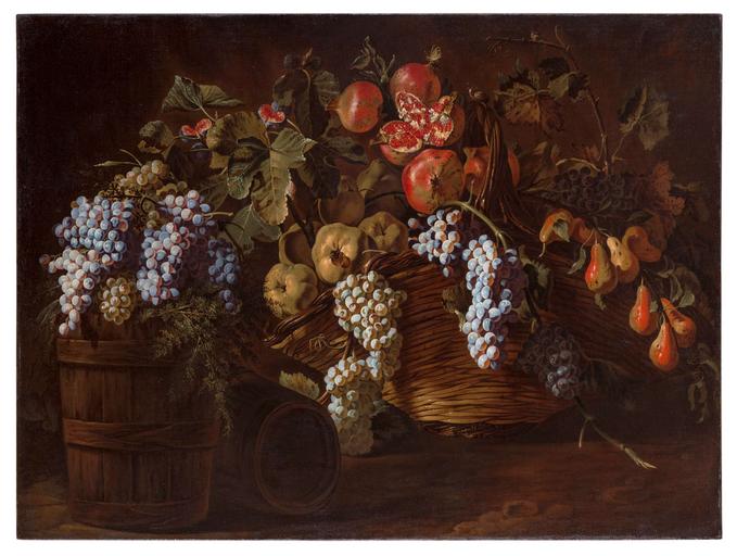 | Keywords: Carlo Manieri (Attr.) - Still Life with a Basket of Grapes, Pomegranates, Quinces and Pears, with a Fig Branch and a Cask of Grapes.jpg attributed to between 1662 1700 Oil on canvas cm 145 195 At Galerie Canesso http //www canesso com/Carlo-MANIERI-Taranto-documented-Rome-between-1662-and-1700-Still-Life-with-Basket-Grapes-Pomegranates-Quinces-and-Pears-with-Fig-Branch-and-Cask-Grapes-DesktopDefault aspx tabid 6 tabindex 5 objectid 735579 categoryid 0 Canesso other versions PD-old-100 Carlo Manieri 1 17th-century paintings location missing 17th-century still-life paintings Oil still-life paintings Paintings of grapes Paintings of pears Baroque still life paintings of fruit 17th-century paintings not categorised by year 17th-century still-life paintings of fruits |