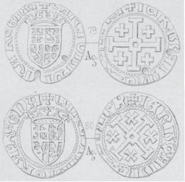 Keywords: Carlota, Queen of Cyprus, coins..jpg en Silver gros coins 1458-1460 Cyprus Obverse Crowned shield with Lusignan coat of arms CARLOTA DI GRA REGNA Reverse Cross of Jerusalem IERVZALM E D CHIPR Diametre 25 mm Weight 3 96 gr 69 5 Enetian grains 2011-10-10 Sathas K N 1873 Mesaionike Bibliotheke Medieval Library vol 2 Chronos Editions Venice table Z Lambrou P Inedited coins of the Medieval Kingtom of Cyprus PD-old-100 Uploaded with UploadWizard Coats of arms on coins Crosses on coins Charlotte I of Cyprus Coats of arms of Kingdom of Cyprus Coats of arms of Kingdom of Jerusalem |