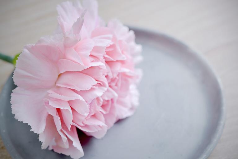 Keywords: carnation flower pink blossom bloom petals pink flower plate schnittblume close