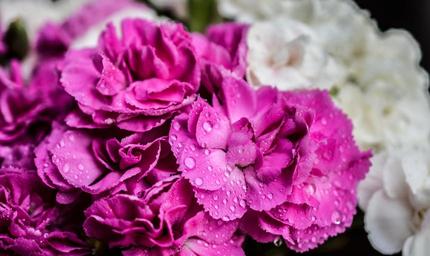Keywords: carnation flowers purple nature close pink blossom flora plant bloom color season macro droplets
