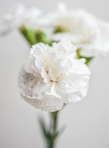 Keywords: carnation white flowers blossom color bloom floral nature fresh natural plant freshness romantic elegant elegance macro droplets single