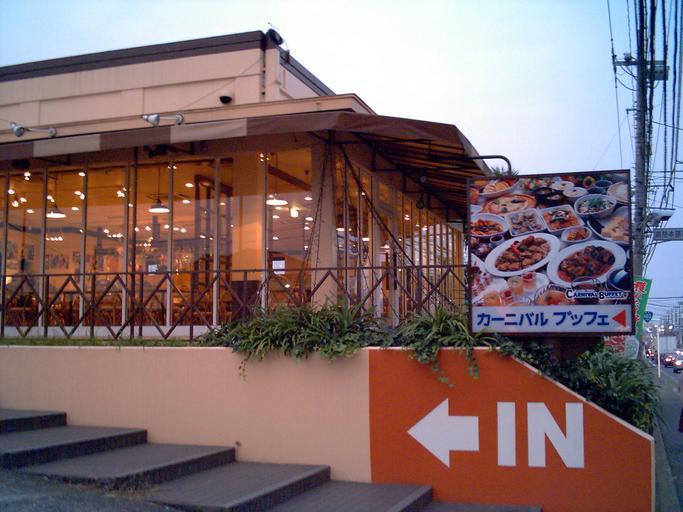 | Keywords: Carnival Buffet Restaurant in Japan01.jpg carnival Buffet Restaurant in Japan photography day 2006/10/20 photography person kici Restaurants in Japan Outside stairs in Japan Orange signs Left arrow signs in Japan English language signs in Japan IN letter combinations ja すかいらーく 2006-10-20 own assumed Kici |