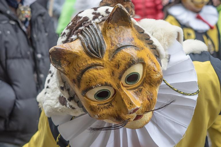 Keywords: carnival fasnet colorful swabian alemannic mask carved fig haes fools jump wooden mask panel color oblong culture tradition party celebrate custom customs cat cat face