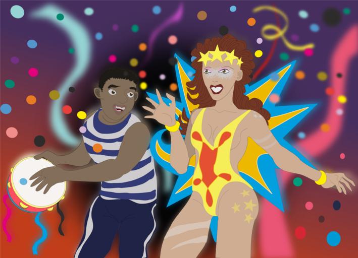 Keywords: carnival revelry party samba illustration customs joke fantasy popular dance