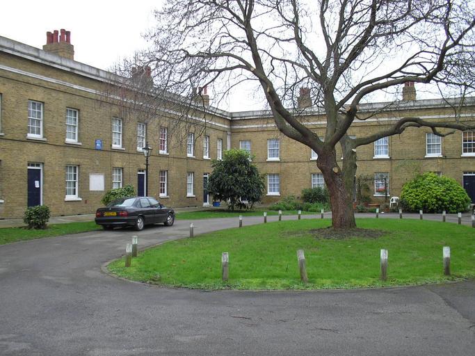 | Keywords: Caroline Gardens Back Section Corner.JPG South of the back section on the Caroline Gardens Estate in Peckham South London UK This was originally built as the Licensed Victuallers Asylum in 1827 2006-12-10 own assumed Vaughan~commonswiki Caroline Gardens |