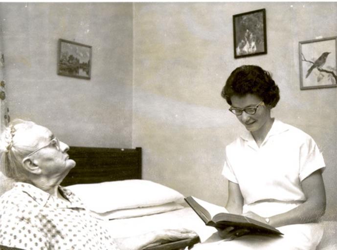 | Keywords: bible carolyn yoder carolynyoder alice mcmeen alicemcmeen mennonite board of missions maple lawn homes home for the aged eureka illinois voluntary service mennonite voluntary service elderly nursing homes mennoniteboardofmissionsmaplelawnhomeshomefortheagedeurekaillinoisvoluntaryservicemennonitevoluntaryserviceelderlynursinghomes monochrome Caption: November, 1963. Carolyn Yoder, VSer from LaGrange, Ind., reading the Bible to Alice McMeen, a member of Maple Lawn Homes. Citation: Mennonite Board of Missions. Photographs. Illinois, Eureka, 1961-63. IV-10-7.2 Box 3 Folder 70. Mennonite Church USA Archives - Goshen. Goshen, Indiana. Caption: November, 1963. Carolyn Yoder, VSer from LaGrange, Ind., reading the Bible to Alice McMeen, a member of Maple Lawn Homes. Citation: Mennonite Board of Missions. Photographs. Illinois, Eureka, 1961-63. IV-10-7.2 Box 3 Folder 70. Mennonite Church USA Archives - Goshen. Goshen, Indiana. |