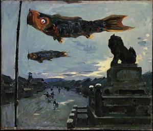 | Keywords: Carp Banners in Kyoto.jpg oil canvas institution Museum of Fine Arts Boston accession number 1986 582 object history credit line Carp Banners in Kyoto formerly known as Boys' Festival from the Bluff Yokohama sic oil canvas 1888 by Louis-Jules Dumoulin French painter 1860-1924 'Art Artifice Japanese Photographs of the Meiji Era “ Selections from the Jean S and Frederic A Sharf Collection at the Museum of Fine Arts Boston' with essays by Sebastian Dobson Anne Nishimura Morse and Frederic A Sharf Boston MFA Publications 2004 95 Morse Anne Nishimura 'Souvenirs of Old Japan Meiji-Era Photography and the Meisho Tradition' In 'Art Artifice Japanese Photographs of the Meiji Era “ Selections from the Jean S and Frederic A Sharf Collection at the Museum of Fine Arts Boston' Boston MFA Publications 2004 p 48 repr ; p 49 http //www getty edu/vow/ULANFullDisplay find dumoulin role nation prev_page 1 subjectid 500067774 Union List of Artist Names s v Dumoulin Louis-Jules 34801 PD-old-100-1923 Paintings from Japan Koinobori Adolfo Farsari Paintings in the Museum of Fine Arts Boston Louis-Jules Dumoulin Carps in art |
