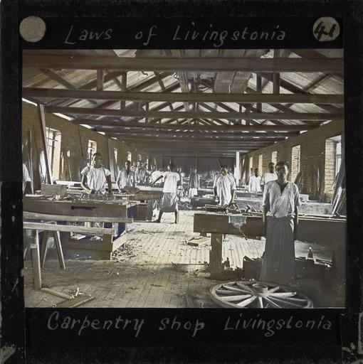 MAKE A MEME View Large Image Carpentry Shop, Livingstonia, Malawi, ca. 1894-1904 (imp-cswc-GB-237-CSWC47-LS5-1-041).jpg en <br> Carpentry Shop Livingstonia Malawi ca 1894-1904 Photograph of the interior of a carpentry shop in Livingstonia Malawi The building is a red ...