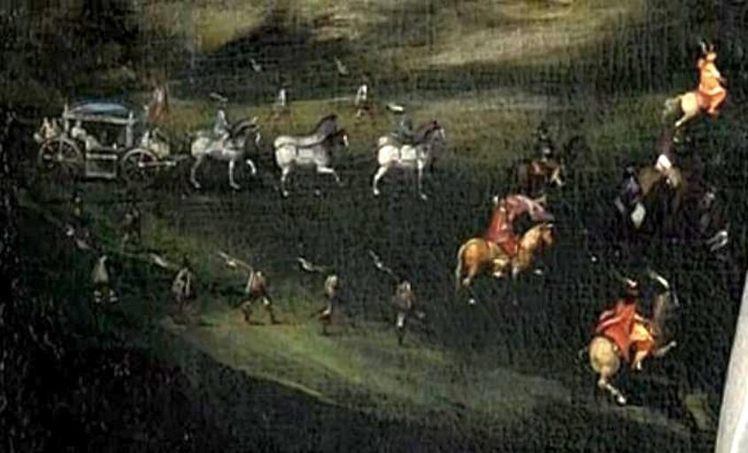 | Keywords: Carriage of Marie Louise Gonzaga.JPG Carriage of Marie Louise Gonzaga detail of Queen's portrait Powóz Ludwiki Marii Gonzagi detal portretu królowej oil canvas Warsaw Institution Wilanów Palace Museum It probably depitcts Queen's entry into Poland in 1645 own ca 1650 attributed to Copyright expired PD-Art Other versions PD-old-100 Ludovica Maria Gonzaga Carriages in art Carriages in the 1640s | ||||