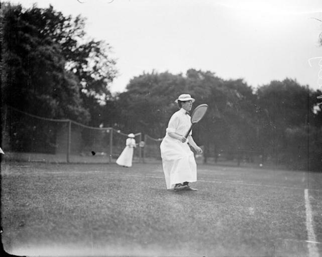 | Keywords: Carrie neely 1905.jpg en Portrait of Miss Carrie Neely tennis player positioning on a tennis court to receive a ball at a tennis club in Chicago Illinois A woman tennis player is visible on the court behind her in the background http //memory loc gov/cgi-bin/query/h ammem/cdn field 28NUMBER+ band 28ichicdn+s004410 29 29 published in Chicago Daily News SDN-004410 Chicago Daily News negatives collection Chicago History Museum author 1905 PD-US-1923 Anonymous-EU Carrie Neely Black and white photographs of tennis Chicago Daily News negatives collection 1905 in tennis |
