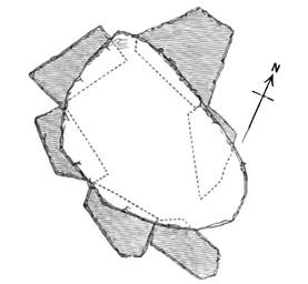 | Keywords: Carrowmore Megalithic Cemetery P7 Ground Plan by W. G. Wood-Martin 1886.png Ground plan of P7 by W G Wood-Martin as published in his article The Rude Stone Monuments of Ireland Continued The Journal of the Royal Historical and Archaeological Association of Ireland Fourth Series 7 no 68/69 1886 539 “95 Original caption <br/>Fig 22 ”No 7 Monument Carrowmore Ground Plan of Cromleac Scale 4 fett to 1 inch https //archive org/download/journal02irelgoog/journal02irelgoog pdf p 555 of W G Wood-Martin The Rude Stone Monuments of Ireland Continued The Journal of the Royal Historical and Archaeological Association of Ireland Fourth Series 7 no 68/69 1886 539 “95; this image was extracted from the PDF page number 649 the white background was made transparent and the format was converted to PNG 1886 William Gregory Wood-Martin 1847 “1917 see http //catalogue nli ie/Record/vtls000132150 NLI record PD-old-auto-1923 1917 Carrowmore Megalithic Cemetery P7 Megaliths diagrams |