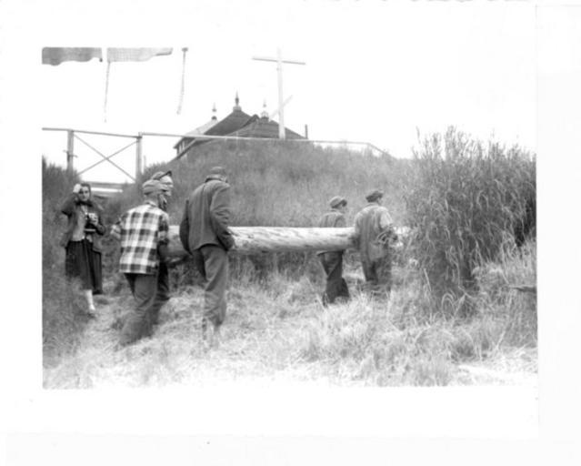 Keywords: logs dogs construction mennonite board of missions mennonite mission network voluntary service alaska mennoniteboardofmissionsmennonitemissionnetworkvoluntaryservicealaska blackandwhite monochrome outdoor black and white Caption: November, 1955. Carrying a log from the beach up to the building site. A distance of 250 yards and uphill all the way. Only a few were carried in this manner, most of them were hauled up on a two wheeled cart pulled by the dogs. Citation: Mennonite Board of Missions. Photographs. Alaska Voluntary Service. 1957-1960. IV-10-7.2 Box 1 Folder 2 Photo E. Mennonite Church USA Archives - Goshen. Goshen, Indiana. Caption: November, 1955. Carrying a log from the beach up to the building site. A distance of 250 yards and uphill all the way. Only a few were carried in this manner, most of them were hauled up on a two wheeled cart pulled by the dogs. Citation: Mennonite Board of Missions. Photographs. Alaska Voluntary Service. 1957-1960. IV-10-7.2 Box 1 Folder 2 Photo E. Mennonite Church USA Archives - Goshen. Goshen, Indiana. |