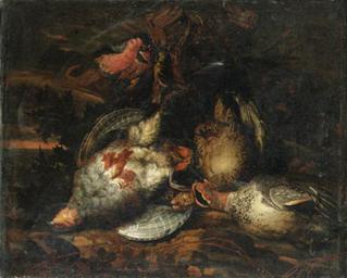 | Keywords: Carstiaen Luyckx - Partridge, a brace of teal, a bullfinch, a goldfinch, a bluetit and other dead birds in a landscape.jpg  Artwork Creator Carstian Luyckx en Partridge a brace of teal a bullfinch a goldfinch a bluetit and other dead birds in a landscape 1650 - 1658 http //www christies com/lotfinder/lot/carstiaen-luyckx-partridge-a-brace-of-teal-1001123-details aspx intObjectID 1001123 intObjectID 1001123 Oil canvas size cm 46 57 5 object history credit line Sold at Christie's on 10 July 1998 London lot 181 accession number PD-old-100 PD-old-100 Carstian Luyckx 01 Still-life paintings of dead birds |