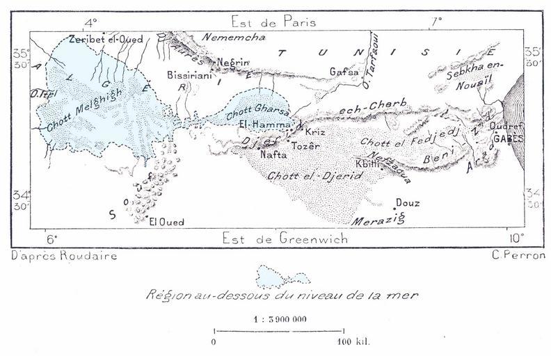 | Keywords: Carte chotts roudaire.jpg Carte des chotts relevée par Roudaire dans le cadre du projet de la mer intérieure Collection personnelle Bertrand Bouret http //profburp com PD-Tunisia Old maps of Tunisia Chott Melrhir Chott el Gharsa Chott el Djerid François Élie Roudaire |