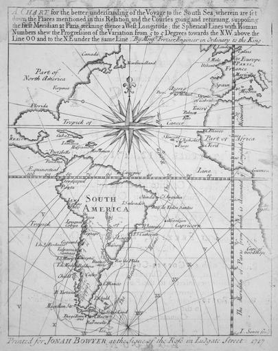 | Keywords: Carte page de garde.jpg map first page A voyage to the south-sea and along the coasts of Chili and Peru in the years 1712 1713 and 1714 by Monsieur Frezier Exemplaire de la bibliothèque patrimoniale de Gray 70100 France 1717 Amédée Frézier scan Jeffdelonge PD-old-100 Frézier's travel 01 |