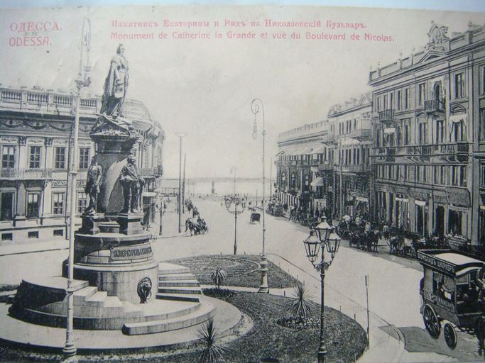 | Keywords: Carte Postale Monument de Catherine la Grande et vua du Boulevard de Nicolas.jpg en Open letter post card with view to Catherinskaya square and Nikolaev boulevard in Odessa Early XX century ru Отк ытка начала XX века с видом на Екате ининскую площадь и иколаевский бульва в г Одесса own HOBOPOCC Postcards of Odessa Katerynynska Ploshcha Founders of Odessa monument PD-RusEmpire | ||||