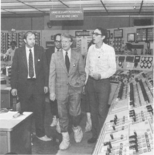 | Keywords: Carter TMI-2.png en President Jimmy Carter touring the TMI-2 control room with l to r Harold Denton Governor Dick Thornburgh and James Floyd supervisor of TMI-2 operations on April 1 http //www threemileisland org/downloads/188 pdf Report of The President's Commission on the Accident at Three Mile Island The Need for Change The Legacy of TMI p 132 John G Kemeny et al 1979-10 PD-USGov Three Mile Island accident Jimmy Carter Dick Thornburgh | ||||