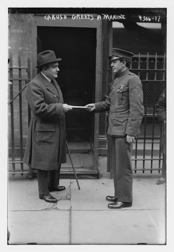 | Keywords: Caruso greets a marine (LOC) (21516651328).jpg Bain News Service publisher Caruso greets a marine between ca 1915 and ca 1920 1 negative glass ; 5 x 7 in or smaller Notes Title from unverified data provided by the Bain News Service on the negatives or caption cards Forms part of George Grantham Bain Collection Library of Congress Format Glass negatives Rights Info No known restrictions on publication Repository Library of Congress Prints and Photographs Division Washington D C 20540 USA http //hdl loc gov/loc pnp/pp print hdl loc gov/loc pnp/pp print General information about the Bain Collection is available at http //hdl loc gov/loc pnp/pp ggbain hdl loc gov/loc pnp/pp ggbain Higher resolution image is available Persistent URL http //hdl loc gov/loc pnp/ggbain 25142 hdl loc gov/loc pnp/ggbain 25142 Call Number LC-B2- 4306-17 https //www flickr com/photos/library_of_congress/21516651328/ Caruso greets a marine LOC LOC-image ggbain 25142 https //www flickr com/people/8623220 N02 The Library of Congress http //www loc gov/rr/print/195_copr html noknown The Library of Congress Flickr Commons PD-Bain The Library of Congress https //flickr com/photos/8623220 N02/21516651328 2016-09-08 07 14 12 pd Uncategorized 2016 December 20 |