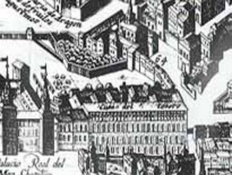 Keywords: Casa del Tesoro.jpg Plano de Madrid en el siglo XVII Detalle de la Casa del Tesoro http //www madridhistorico com/seccion7_enciclopedia/index_enciclopedia php id C idinformacion 143 pag 4 www madridhistorico com 1656 Pedro Teixeira Royal Alcazar of Madrid Pedro Teixeira's Topographia de la Villa de Madrid PD-old-100 |