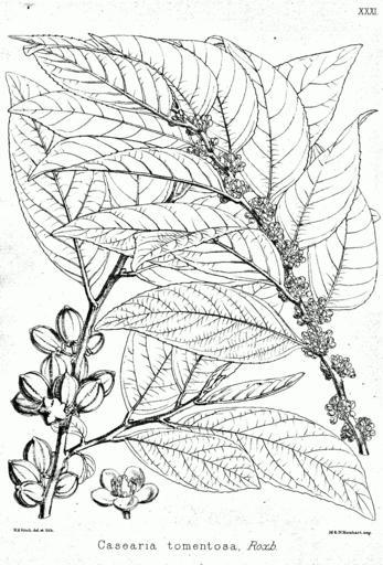 Keywords: Casearia tomentosa Bra31.png reduced from tab 31 of D Brandis Illustrations of the Forest Flora of North-West and Central India 1874 Casearia tomentosa published by Kurt Stüber http //www biolib de PD-old Casearia tomentosa