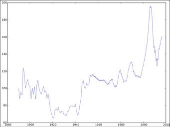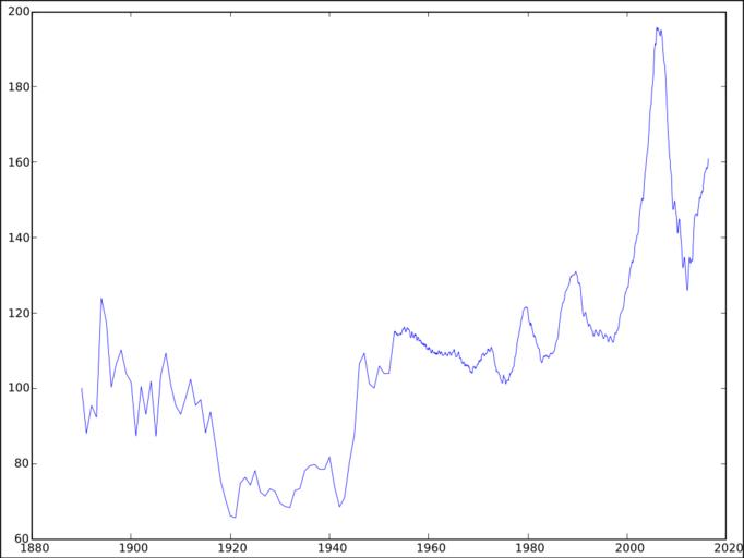 Keywords: Case–Shiller Index.svg en The Case “Shiller Real Home Price Index with values from 1890 until May 2016 Created with Octave 3 8 0 based on data from http //www econ yale edu/~shiller/data htm 2016-08-31 own Gabbe other versions cc-zero Charts Financial graphs Economic history of the United States |