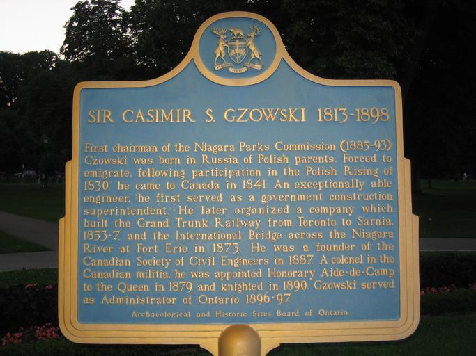| Keywords: Casimir S. Gzowski memorial plaque.jpg Kazimierz S Gzowski Canadian engineer of Polish descent Memorial plaque in Niarga Falls Ontario Canada Aut Filip Krauze Sept 2005 2005-08-21 own assumed Wrzatek Kazimierz Gzowski Plaques in Niagara Falls Ontario Plaques to engineers |