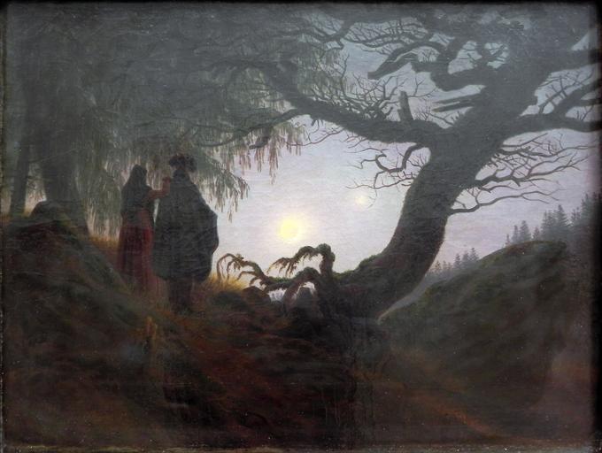 | Keywords: Caspar David Friedrich (13)Man a Woman.JPG  Artwork Q3139782 Creator Caspar David Friedrich 1818/1824 Oil on canvas size cm 34 44 Institution Alte Nationalgalerie 3 06 accession number A II 887 http //www smb-digital de/eMuseumPlus service ExternalInterface module collection objectId 964081 viewType detailView Staatliche Museen zu Berlin<br> 02531375 object history 1922 Kunsthandlung Salomon Dresden; - 1932 Paul Cassirer Berlin; - Sammlung Lulu Böhler Luzern; - 1935 Ankauf von der Galerie Fritz Nathan Luzern credit line exhibition history User Hajotthu PD-old-100 DEFAULTSORT Caspar David Friedrich Mann und Frau in Betrachtung des Mondes 1820s 1820s paintings by Caspar David Friedrich 1820 Mann und Frau in Betrachtung des Mondes Paintings by Caspar David Friedrich in the Nationalgalerie 19th-century paintings in Germany |