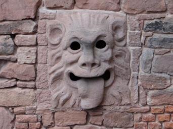 Keywords: castle alsace aut koenigsbourg france village heritage ruin pierre middle age architecture haut-koenigsbourg gargoyle pink sandstone vosges former language figure funny fitting door