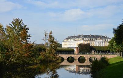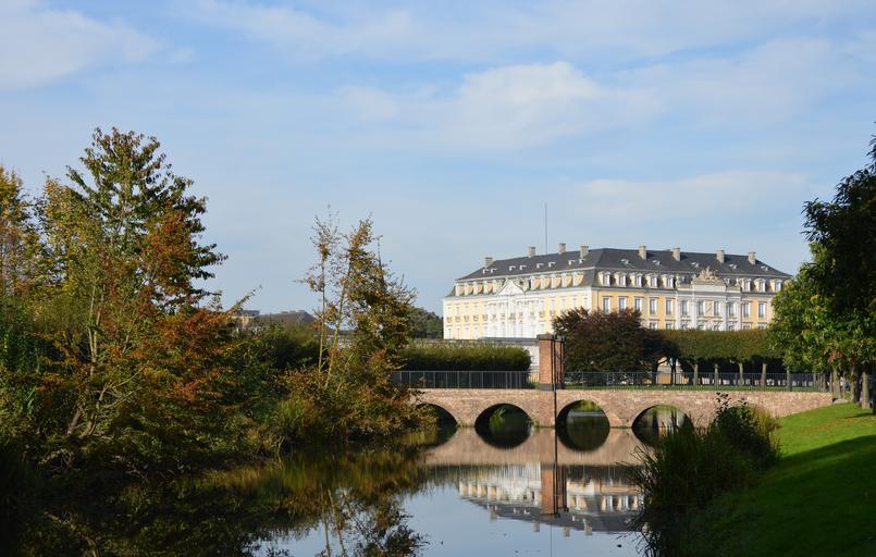 Keywords: castle baroque brühl garden pond park plant lake water bridge castle park
