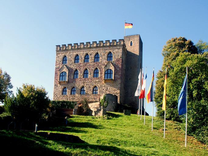 Keywords: castle hambach history palatinate germany flags trees middle ages meadow fortress visitors