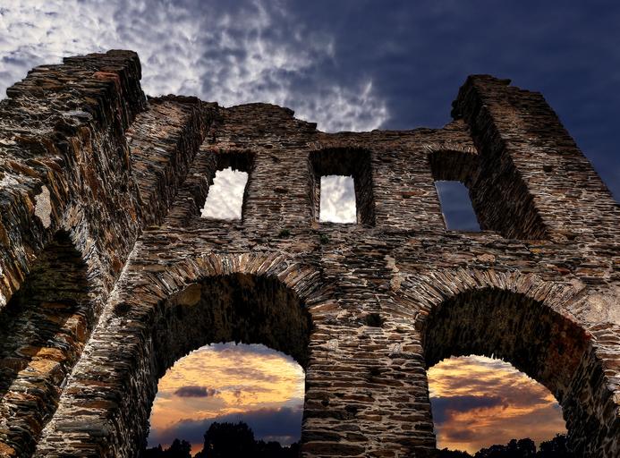 | Keywords: castle middle ages sublime enormous imposing tourist attraction knight's castle places of interest tower battlements fortress mountain bulwark fortress towers wall rush closed landmark architecture ruin stone window window sky germany clouds archway building elder stones old castle stone dramtic sky background old buildings |