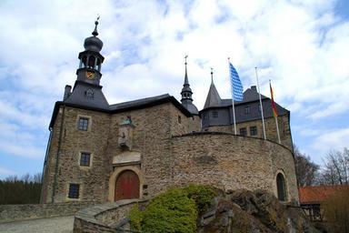 Keywords: castle sky clouds historical landmark old flags wall stone architecture buildings summer spring nature outside
