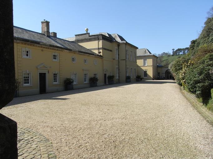 Keywords: CastleHillFilleighDevonMainCourtyard.jpg en Castle Hill Filleigh Devon North Front and main entrance courtyard viewed westwards from gates from service courtyard own photo own photo Mar 2012 Castle Hill Devon