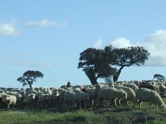 Keywords: Castro Verde Countryside-Shepherd with flock.JPG en Sheep flock on road to S Pedro das Cabeças Memorial to Battle of Ourique Own Forcastro 2009-07-4 Castro Verde Alentejo