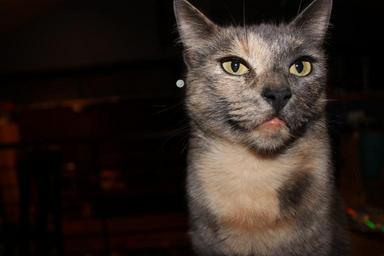 Keywords: cat angry tortoiseshell domestic face animal feline cute pet head portrait kitty crazy