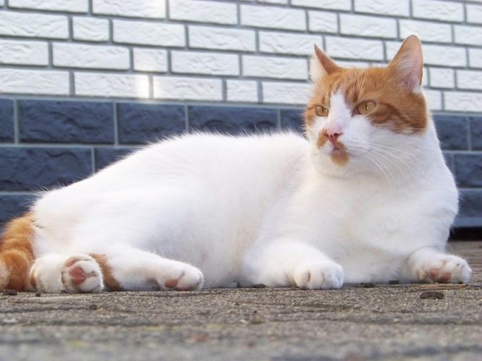 Keywords: cat animal playful pet mieze adidas domestic cat curious red and white mackerel tabby paw eye fur mammal