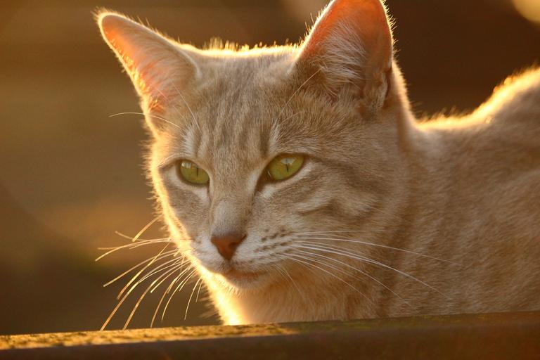 Keywords: cat autumn stainless evening light sun cat face breed cat