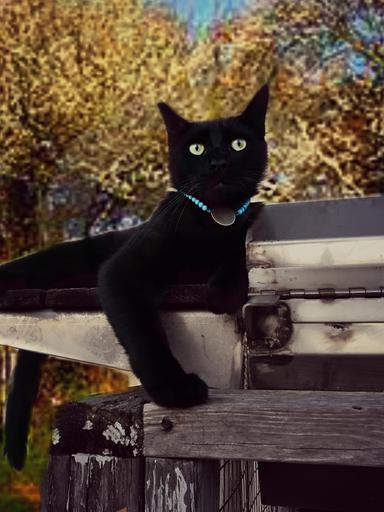 Keywords: cat black fur domestic playful rescue cute abandoned outdoors