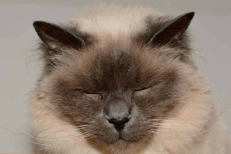 Keywords: cat cat face head domestic cat sleepy tired race sacred birman close portrait relax eyes face adidas mieze
