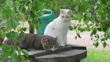 Keywords: cat cats animals hairy gaze cat lying lying summer tree