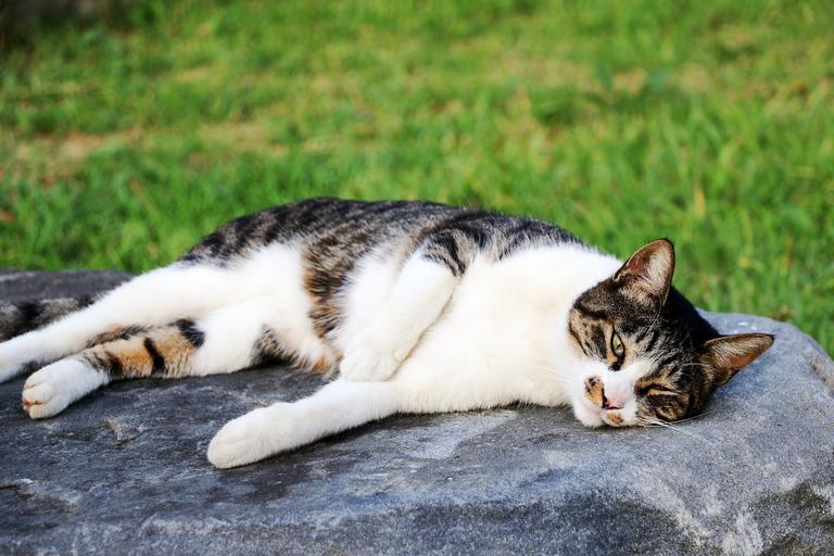 Keywords: cat cats park siesta cute love walk pm animal stone grass outdoor