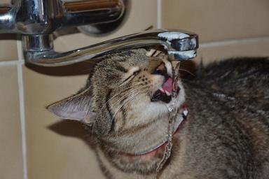 Keywords: cat drinking kitten pet animal tomcat photo photographer fur animals water faucet