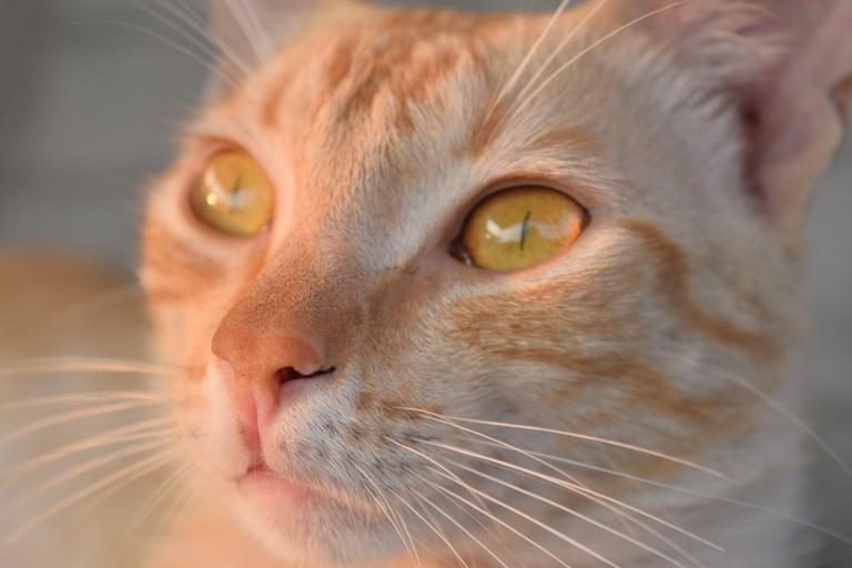 Keywords: cat feline animal pet redskin nose close eyes yellow