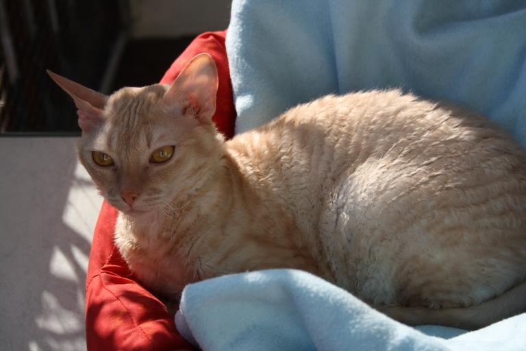 Keywords: cat feline domestic animal pet fur portrait adorable resting blanket