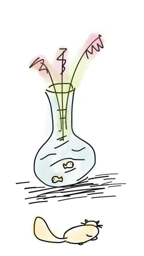 Keywords: cat fish vase water flower plant stare curiosity goldfish fishbowl animal cute looking swimming sketch doodle