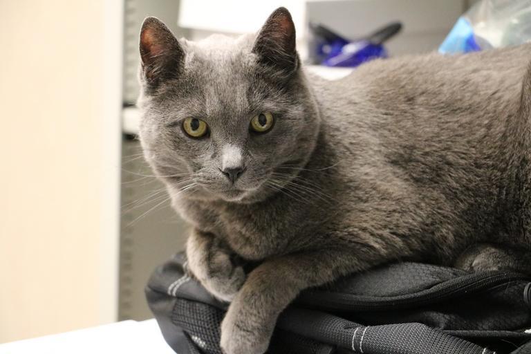 Keywords: cat gray cat old cat feline domestic short hair animal pet office pet