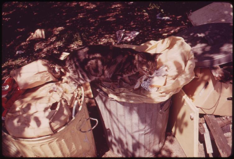 | Keywords: CAT IN GARBAGE CAN - NARA - 547852.jpg Scope and content General notes 547852 Local identifier 412-DA-5365 Environmental Protection Agency 12/02/1970 - NARA-Author Tress Arthur 1940- Photographer 1100153 <br /> New York New York state United States North and Central America inhabited place 4191644 40 7 -74 <br /> Still Picture Records Section Special Media Archives Services Division NWCS-S National Archives at College Park 8601 Adelphi Road College Park MD 20740-6001 05/1973 Record group Record Group 412 Records of the Environmental Protection Agency 1944 - 2006 Record group ARC 708 DOCUMERICA The Environmental Protection Agency's Program to Photographically Document Subjects of Environmental Concern compiled 1972 - 1977 Series ARC 542493 File unit File unit ARC Variant control numbers Agency-Assigned Identifier 090/25/005365<br /> NAIL Control Number NWDNS-412-DA-5365 Other versions <gallery> File CAT_IN_GARBAGE_CAN_-_NARA_-_547852 tif tif File CAT_IN_GARBAGE_CAN_-_NARA_-_547852 jpg jpg </gallery> NARA-cooperation PD-USGov Cats in containers Trash cans in the United States Cats eating Cats with waste |